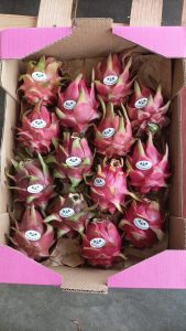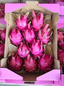 Las pitayas son calibradas y agrupadas por peso y variedad.